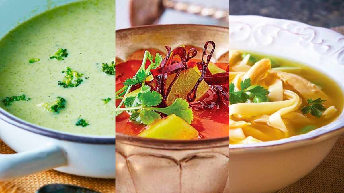 Por otro lado tenemos las sopas, pueden ser tanto frías como calientes como la sopa de tomate, sopa de verduras, menestra de verduras, sopa juliana, sopa de fideos o sopa de pollo. En los meses más calurosos puedes optar por un gazpacho o salmorejo bien fresquito y de segundo unos filetes a la plancha.