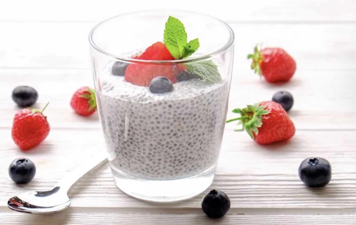 Para hacer un pudin con semillas de chía perfecto puedes utilizar la leche y las frutas que más te gusten, así como también frutos secos o especias. En un vaso coloca dos cucharadas de semillas de chía y 200 ml de leche, en mi caso utilizo leche de soja o leche de avena. Guardamos el vaso en la nevera y dejamos reposar durante cuatro o seis horas.