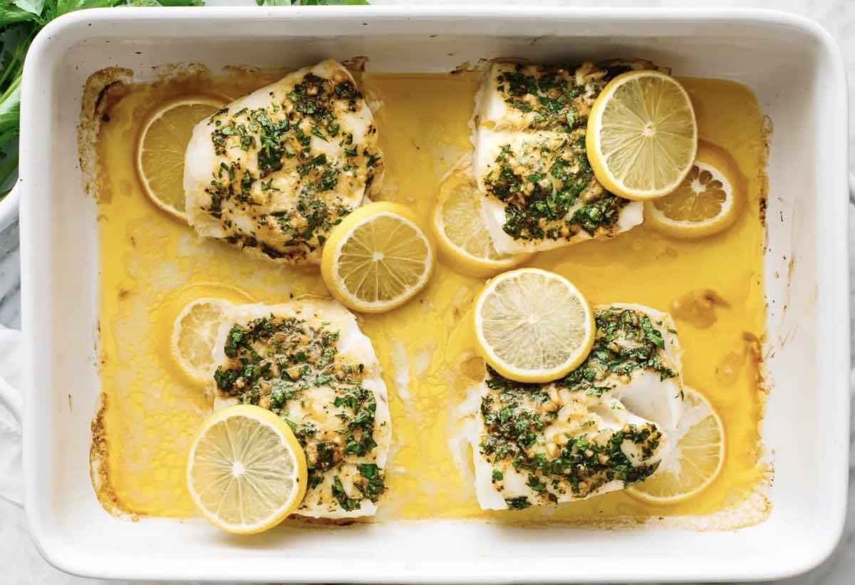 Para hacer el bacalao al horno vas a necesitar mantequilla, ajo, perejil, limón y aceite de oliva. Opcionalmente puedes incorporar a la receta limón, aporta un sabor exquisito así que si dispones de ellos no dudes en agregarlos. Por otro lado añadiremos sal y pimienta negra, dos básicos para las recetas de pescado. En cuanto al bacalao puedes escogerlo fresco o congelado. Si escoges este último recuerda respetar bien los tiempos y el proceso de descongelación para tener éxito con la receta.