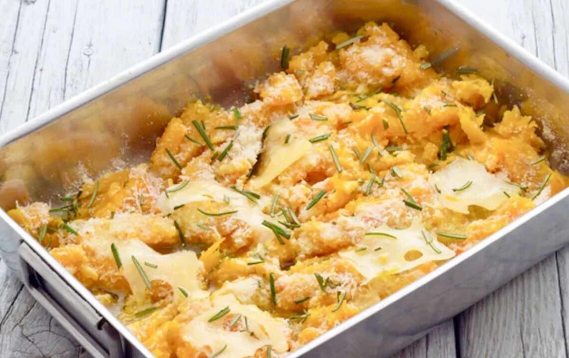 Calabaza gratinada con queso al horno