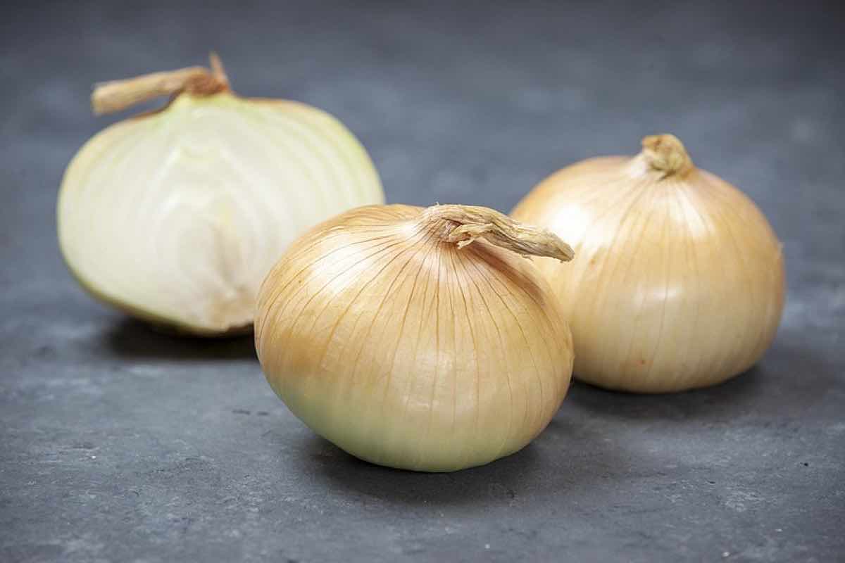 - Cortamos ambos extremos de las cebollas y retiramos la piel.