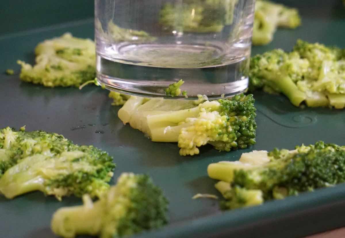 - Aplastamos con ayuda de un vaso para que los ramilletes queden planos.