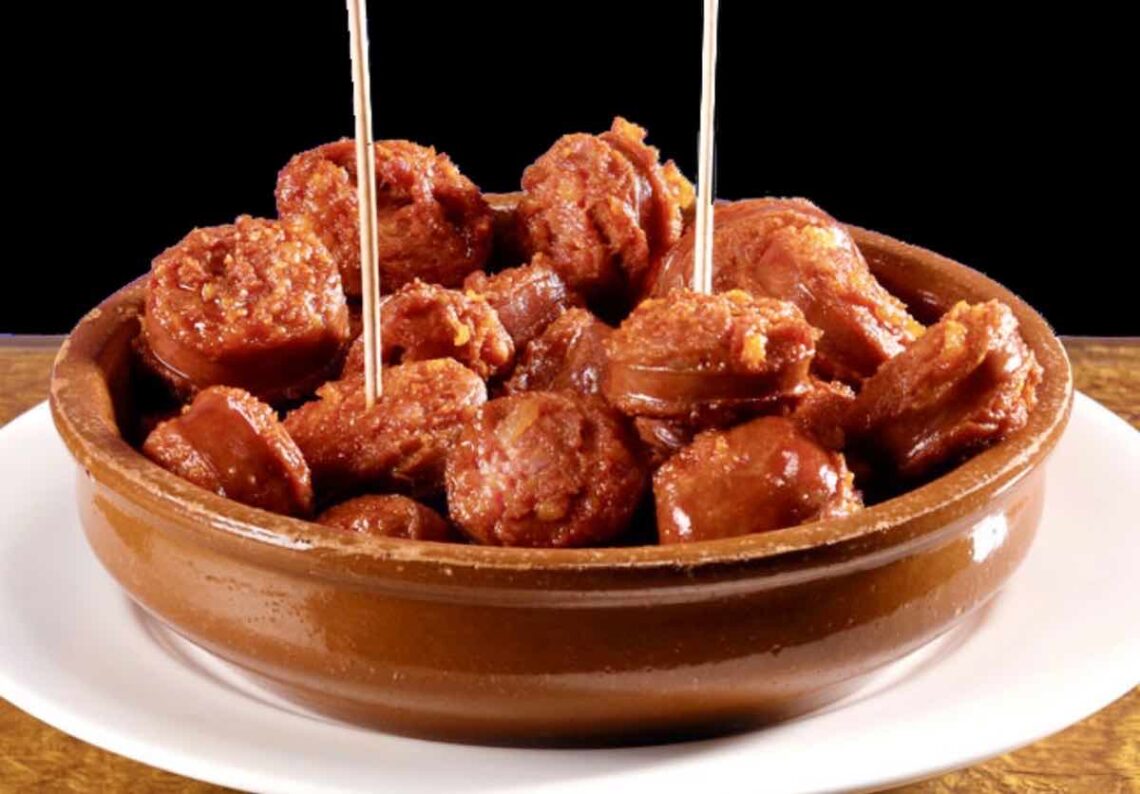 8. Servimos el chorizo frito al mciroondas en una cazuela de barro.