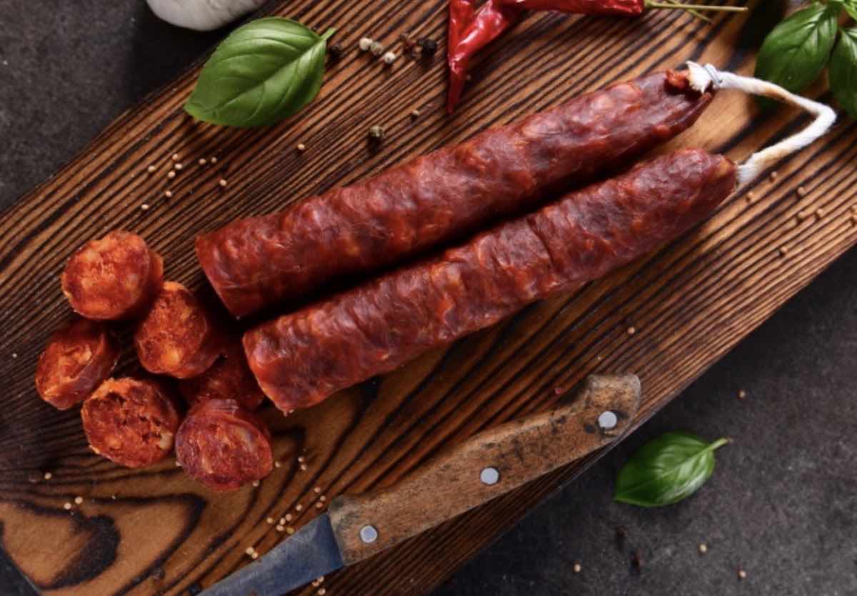 2. Cortamos el chorizo en rodajas del mismo tamaño.