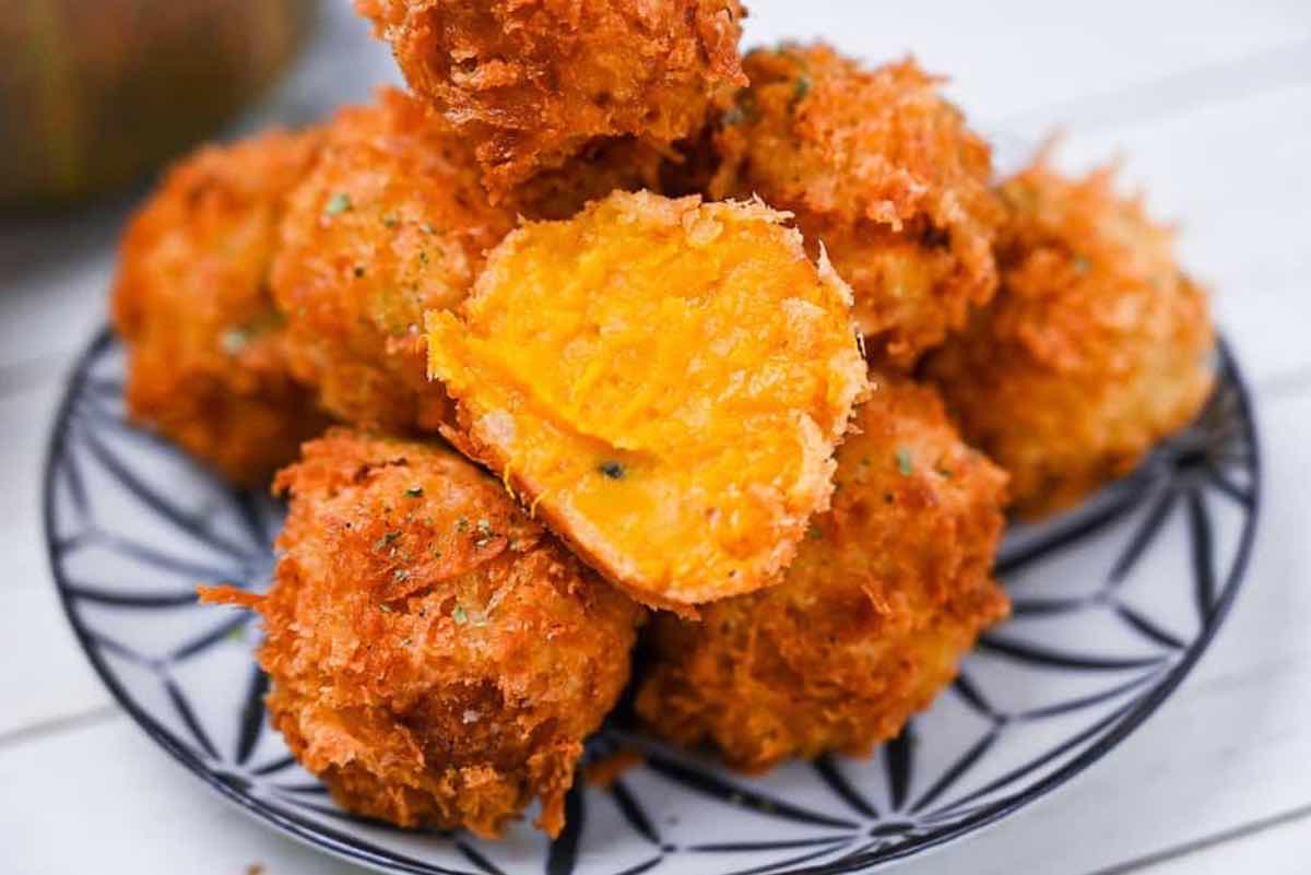 Las croquetas en todas sus versiones están deliciosas pero en esta receta las vamos a preparar de una manera totalmente distinta a la tradicional. En vez de hacerlas con una cremosa bechamel las vamos a preparar con otros ingredientes. Se trata de las croquetas de calabaza y queso, una receta fácil con la que obtendremos unos bocaditos la mar de sabrosos. Puedes servirlas de entrante o bien en un aperitivo con amigos o en familia.