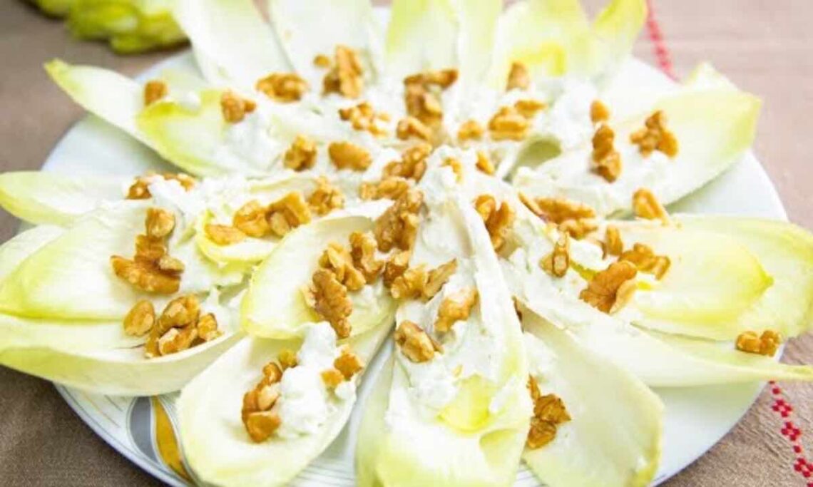 - Por último rellenamos las endivias con la salsa Roquefort al gusto y decoramos con nueces troceadas.