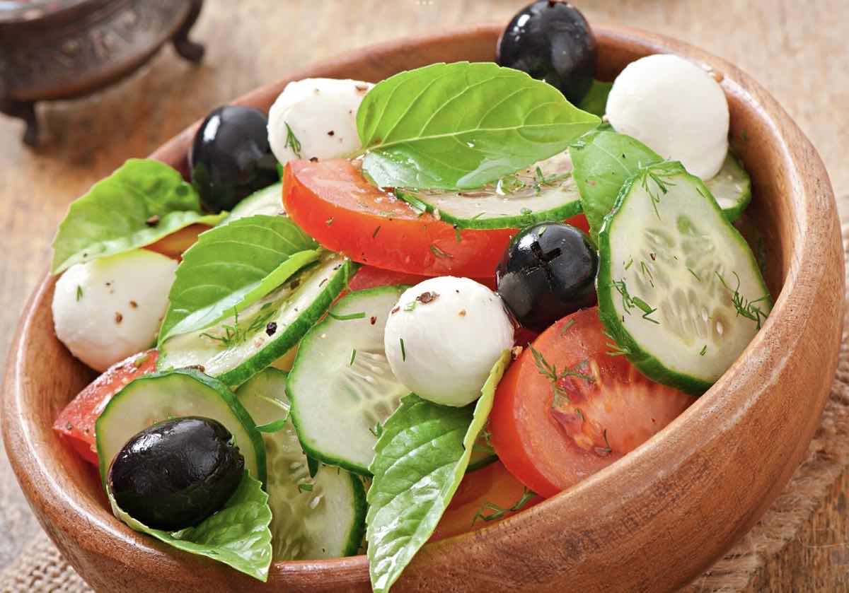 La ensalada de tomate y pepino se hace de forma muy sencilla y no vas a tardar más de 10 minutos en prepararla, como muchísimo. Esta ensalada no solo lleva tomate y pepino sino que también vamos a añadir aceitunas negras y dados de mozzarella. Después vamos a aliñar al gusto siendo la pimienta negra y el orégano dos condimentos imprescindibles.