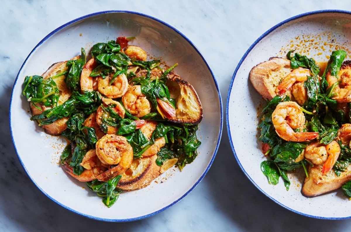 Puedes decorar tus espinacas con gambas al ajillo con unas rebanadas de pan tostado en una sartén con aceite de oliva virgen extra y ajo rallado, quedarán de diez. Si tienes gulas también puedes introducirlas en la receta, combinan a la perfección.