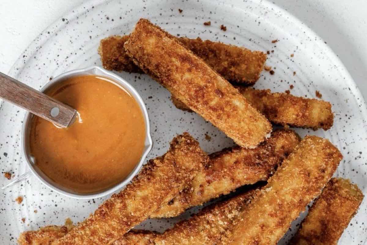 Como consejo te recomiendo freírlos poco a poco, siempre es mejor hacer varias tandas. Por otro lado, puedes hacer los fingers de tofu en freidora de aire o en el horno, también van a quedar de diez y con mucho menos aceite. La salsa que más me gusta para esta receta es la salsa cajún, y además puedes sustituir la mantequilla por la margarina así como también puedes omitirla.