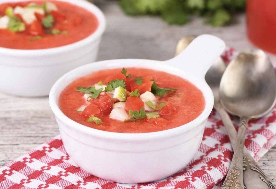 Siempre me había parecido raro el gazpacho de sandía hasta que un día me animé a prepararlo en casa, está mucho más suave que el gazpacho tradicional y es una forma de salir de lo común. Lo bueno de hacerlo casero es que podemos ajustarlo totalmente a nuestro gusto, no solo en la cantidad de sandía y tomate sino también en aceite, vinagre y sal.