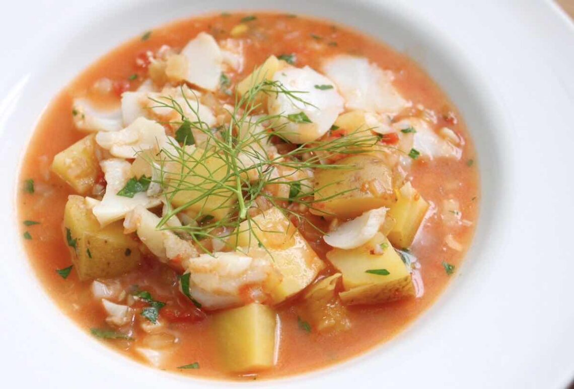 - Antes de finalizar el tiempo de cocción, aproximadamente 5 minutos antes, agregamos el bacalao. Puedes incorporarlo desmigado o bien los lomos enteros.