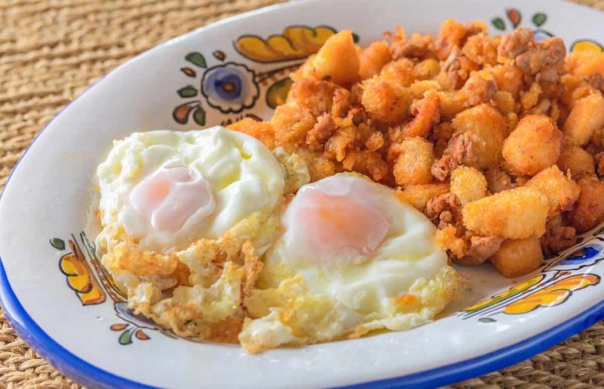 Los huevos los freímos en el momento ya que hay que servirlos calientes. Si las migas de pan están muy húmedas podemos escurrirlas un poco antes de cocinarlas. Mi abuela incorpora uvas a la receta pero es un ingrediente que no le gusta a todo el mundo por lo que puedes servirlas en un plato aparte y que cada uno se sirva en caso de que le gusten.