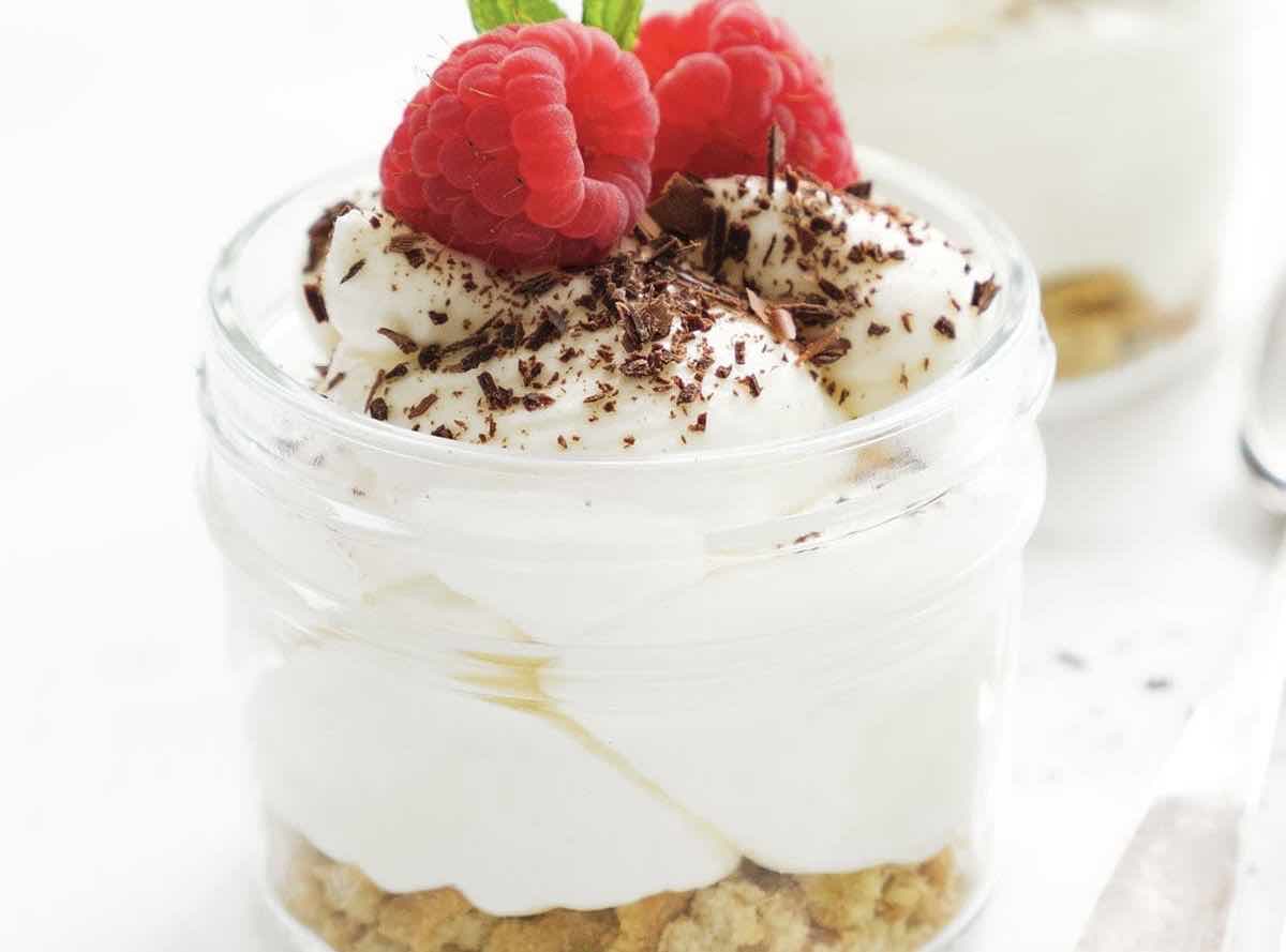 Para hacer la mousse de queso mascarpone vas a necesitar solamente azúcar glass, nata líquida para montar y queso de untar mascarpone. Una vez tengas la mezcla lista mis ingredientes favoritos para decorar son las galletas lotus o galletas Digestive trituradas y unas frambuesas por encima, queda de diez. Además también puedes decorar la mousse con cacao en polvo así como virutas de chocolate. Se trata de que puedas hacer la receta a tu gusto.