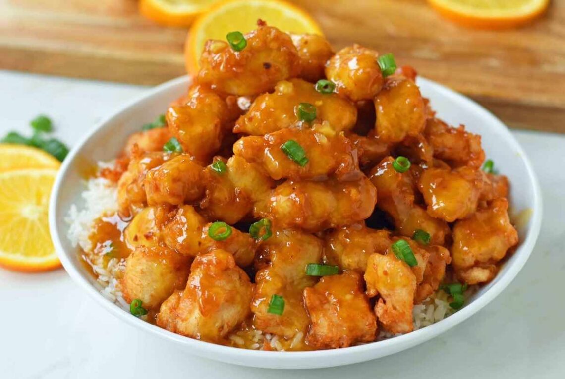 Si ves que la salsa está quedando muy espesa puedes agregar un poco de caldo de pollo, y si es al revés puedes añadir una pizca más de maicena. Por otro lado, una vez emplatado el pollo a la naranja puedes decorarlo con cebollino picado y sésamo, ambos ingredientes darán un extra de sabor.