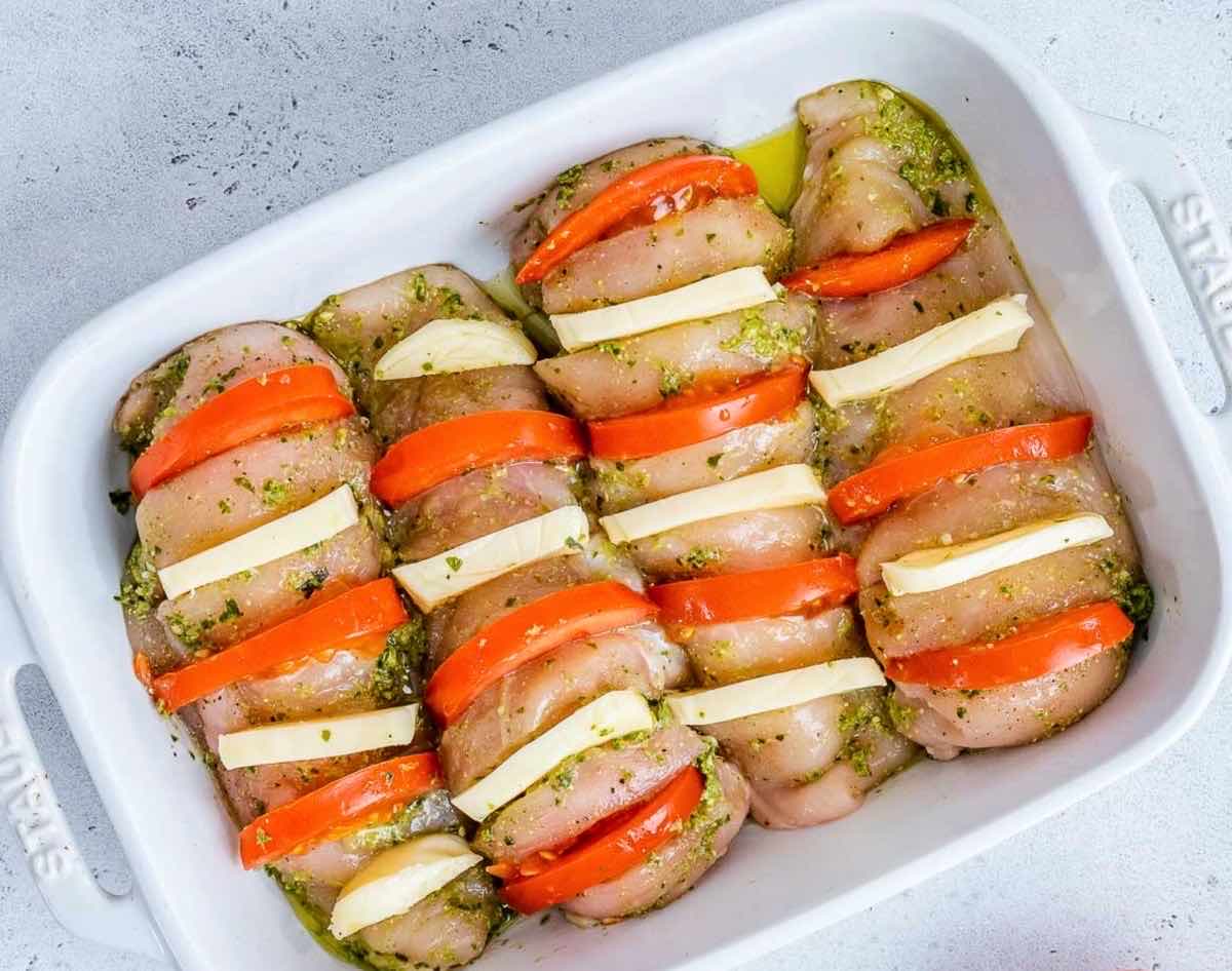 A continuación te explico paso a paso cómo hacer pollo caprese al horno de forma fácil y rápida. Sírvelo en la comida o en la cena y sorprende a todos los comensales. Si vas a preparar poca cantidad también puedes cocinarla en la airfryer, obtendrás el mismo resultado pero en un periodo de tiempo algo inferior.