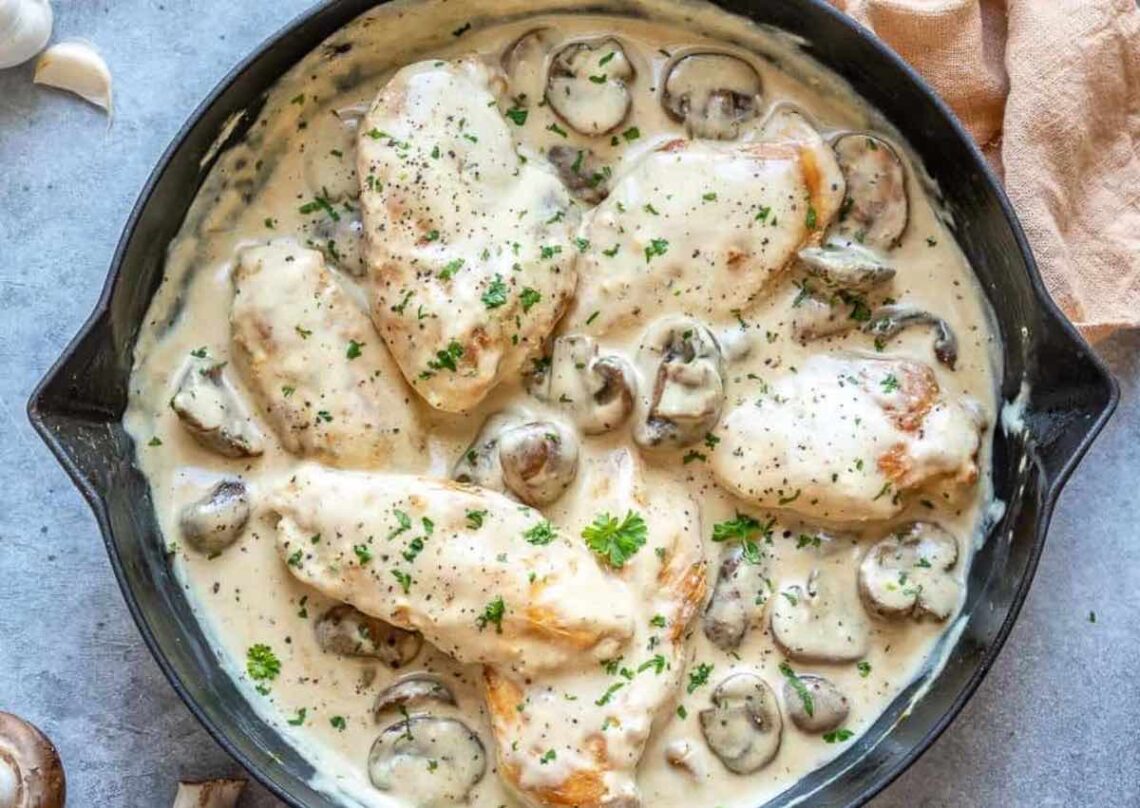 Pollo cremoso con champiñones