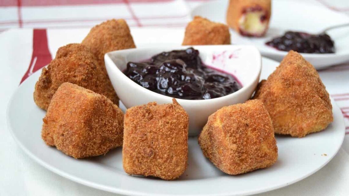 Vamos a ver algunos trucos para hacer el queso frito y que éste no se salga del rebozado. Para poder hacer este delicioso aperitivo tan solo vamos a necesitar queso brie, camembert, queso manchego, rulo de cabra o mozzarella, entre otros, e ingredientes básicos como harina, huevo y pan rallado. En cuanto a la salsa, vamos a elegir mermelada de arándanos, pero puedes elegir mermelada de fresa, de tomate o de albaricoque, por ejemplo.