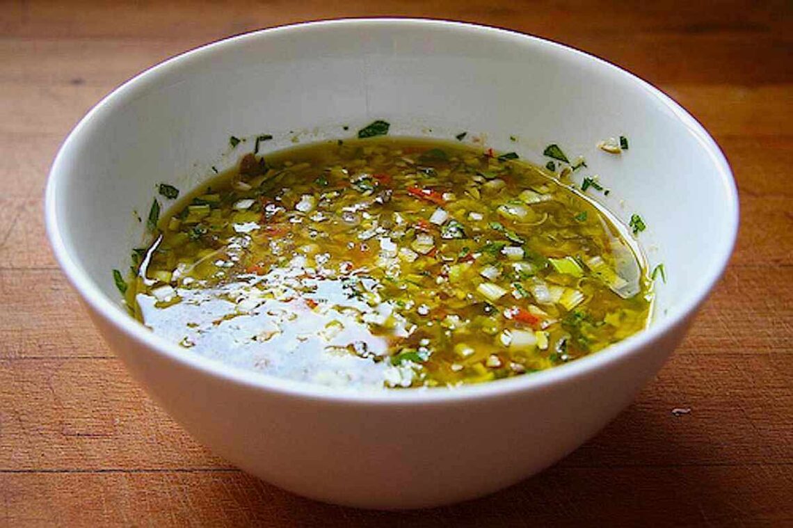 La clave para una salsa vinagreta perfecta es picar muy bien la cebolla y cortar en trozos muy pequeños el resto de ingredientes. Además el tiempo de reposo es fundamental para que la salsa coja bien todos los sabores.