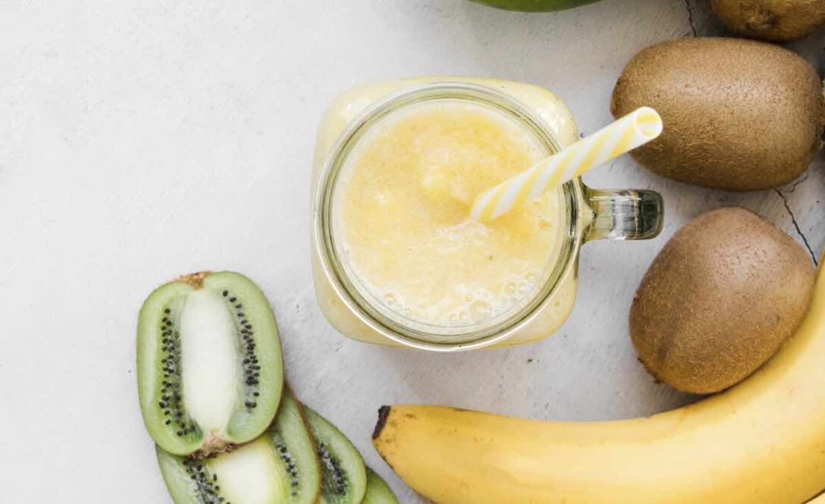 El plátano es una de las mejores frutas que existen para hacer smoothies, nos aportan una textura cremosa y un sabor dulce perfecto para evitar añadir azúcares. Por otro lado, el kiwi también aporta un sabor dulce pero con un ligero toque ácido, este contraste hace que sea un batido ideal para los meses más calurosos. Además vamos a agregar otros ingredientes para hacer el smoothie perfecto. Si tienes una batidora ya puedes preparar tus smoothies o batidos favoritos ya que no se necesita ningún otro electrodoméstico.