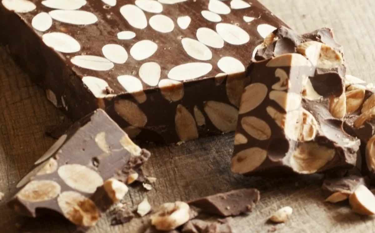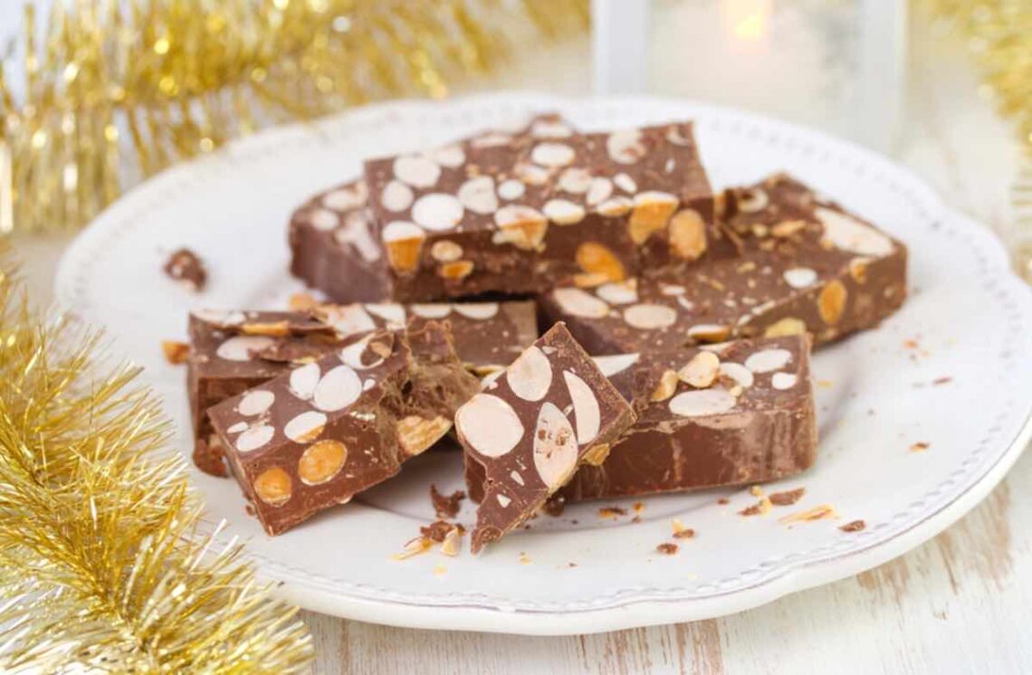 Turrón de chocolate con almendras, un clásico de Navidad ahora casero